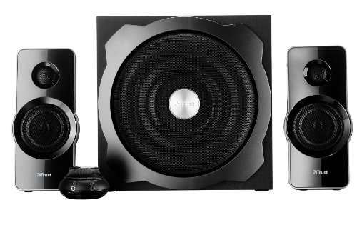 With the way music, videos, gaming and films have been developing; the importance of the home computer is greater than ever. Also, the ability to use your home computer to stream TV, watch music videos, download movies means that having a great sound system is vital to enhance your experience. Trust has always provided a solution for the end users with a key focus of making a product for everyone. With this in mind, Trust introduces the premium quality Tytan 2.1 Speaker Set. This attractive design and rich sound speaker system boasts a total RMS output of 60 Watt (120 Watt peak power). The rich and detailed sound is greatly helped by the superb subwoofer which provides deep bass to this speaker system. On the wired remote, you will find an easy to reach volume control and headphone connection.